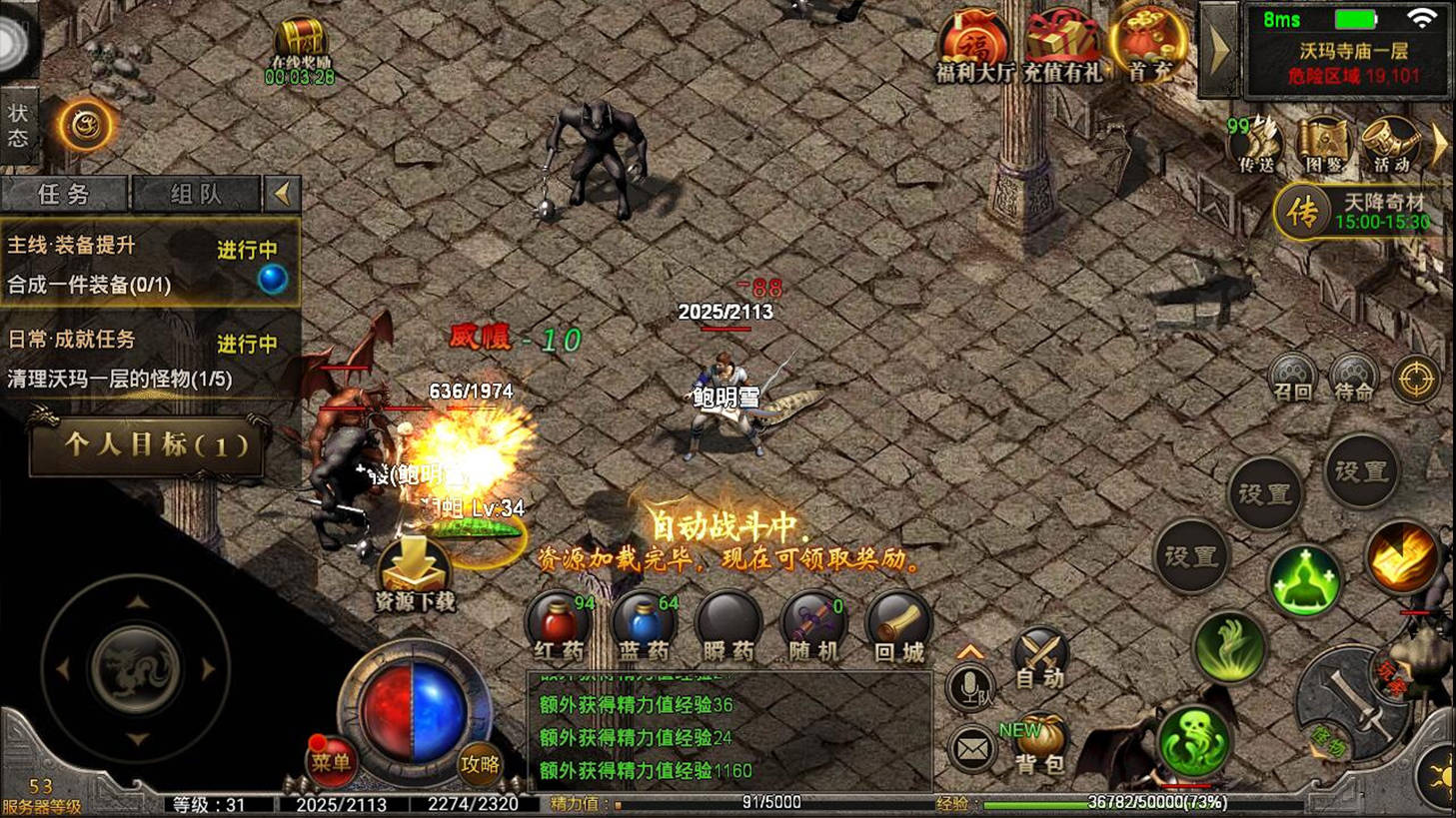 而法师职业则跟战士职业不同,升级的时候不费力,因为它的技能属于远程的群攻击技能,释放技能就可以得到很多怪物的经验值,这一点是其他职业玩家非常羡慕的,但是法师也有自己的苦衷,那就是药水,因为法师的群攻技能是非常消耗药水的。