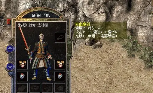 其三是赤血魔剑,无级别并且三职业都适用的一件武器,血红色的刀刃十分特别,属性为15-10攻击、4-3魔法、4-2道术,附带1点准确。想要获取的话只能合成,需要一把罗刹和相应属性的金币,还有六大神水,就能在桃源之门相关的NPC处合成。非常适合在过渡期的玩家们,地位自是不一般,唯一需要注意的一点,就是这件武器一旦穿戴成功,想要取下来的话只能使用战神油或修复油修理。