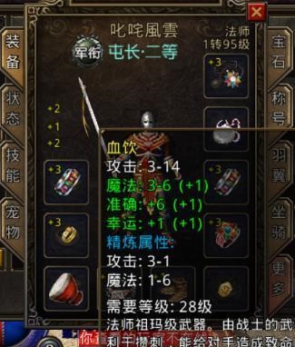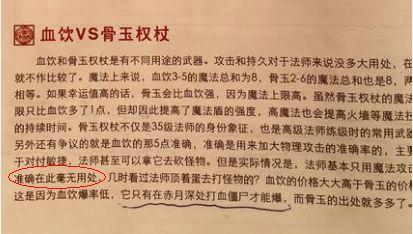 根据当时的资料记载,明确的指出血饮加的准确值仅仅对物理攻击有效,但是对于法师的魔法效果却没有任何影响。后来还有玩家做过相关实验,证实了准确并不能影响法师的输出。总不能法师手拿血饮去砍怪吧,所以这个加准确是比较鸡肋的,玩家们大多也都是因为跟风效应和当时的传言。如果法师是运九套的话,那骨玉权杖就更合适了,那为什么血饮的价格总是比骨玉价格高呢?