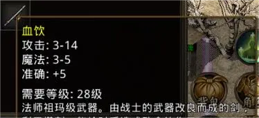 其一就是血饮,这件武器曾经在传奇中,是很多法师玩家们都梦寐以求的武器,外观设定也十分霸气,血红色的剑身充满神秘,属性加成方面玩家们也比较满意,魔法属性3-5,准确属性+5点,虽没有过分惊艳,但也还不错,并且在游戏中只有僵尸有相关爆率,整体上来看还是十分珍贵和经典的。
