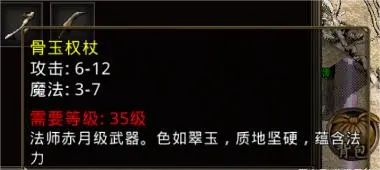 其二是骨玉权杖,它在传奇背景故事中有一段精彩传说,这件武器是由龙骨支撑,所以整个武器身上拥有强大的魔法力量,它是具体属性加成为魔法属性3-7,等级限制为三十五级,整体带来的加成,对于这个中级阶段的法师玩家们来说,已经非常强力了。
