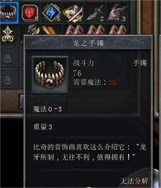 法神戒指的话,需要玩家的魔法属性要达到28点,但是重量的话很轻只有1,而紫碧螺,需要24点魔法值,重量为2,祖玛套中的龙之手镯的重量则为3,对比之下还是法神套在重量方面更贴心。