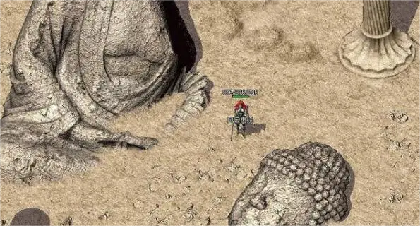 首先就是沙城这张玩家们比较熟悉的地图,在传奇游戏的背后有比较完整的背景故事,不管是三职业还是其他一些怪物的设定都比较合理,整体的游戏中多种元素都是借鉴的东方文化和美学,不管是法师、道士还是战士,以及他们炫酷又出神入化的技能,都能在东方神话中找到影子。在沙城这张地图的画面设定中,野外埋藏着残缺的佛像,整个游戏中只有这一处是如此设计,怎么能看都感觉没那么简单,但游戏中不管是背景还是NPC等相关设定,都没有相关的信息,这背后是想表达些什么呢?