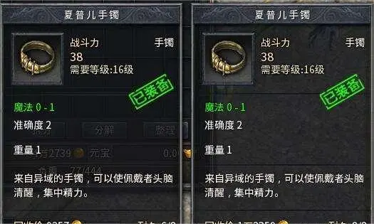 首先要说的这件装备就是夏普尔手镯,它的属性加成一般情况下就是2点准确值加成,有时会出现极品属性3点或者4点准确值,很多玩家觉得它的属性加成没什么用,获取之后就算是捡取也会卖去商店。但其实对于战士职业来说,这件装备还是有实质性帮助的,因为本身战士就是近战职业,如果对方的敏捷很高的话,攻击的过程中就会时常出现miss的情况,会拉低整体的实战输出。但假如战士佩戴上夏普尔手镯增加准确值,会优化这种情况。