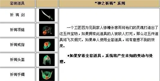 其三,是祈祷套。这套装的轰动事件至今都为玩家们津津乐道,但是不管是什么职业的玩家都深受其害,一旦有玩家凑齐祈祷套的话,就能触发区内的宠物们集体叛变,有些玩家正在刷图却被自己的宠物击杀了,有些在安全区挂机呢,莫名其妙被击杀装备被爆,野外和安全区都是一片狼藉。