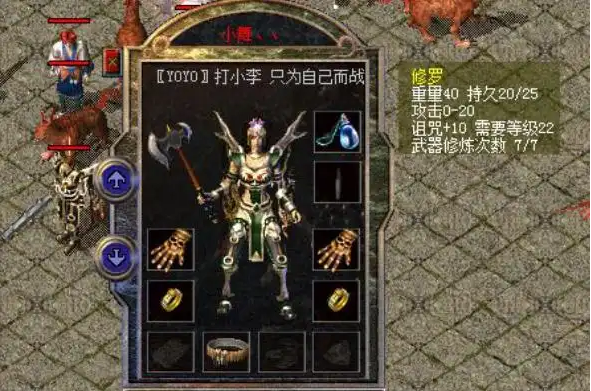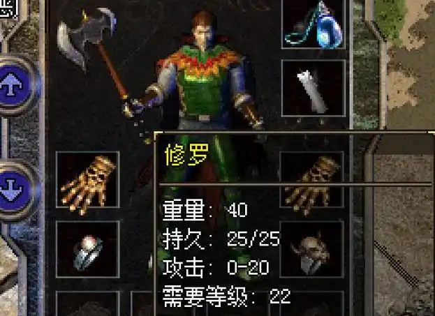 修罗这件武器的名称跟战士职业就很适配,属性加成也十分经典,攻击属性的加成上限高达20点,虽然攻击下限跟之前的战士武器相比没什么特殊优势,但实战中修罗依旧可以发挥出不俗的输出效果。达到22级的战士,需要更高的攻击属性加成来辅助角色成长,除了修罗之外,还有新的盔甲,因为整体色调为绿色,因此被玩家们戏称青蛙皮,而穿戴盔甲手持修罗的战士玩家们,当时也被玩家们称为青蛙战士,也算是当时传奇中一道特殊的风景线。