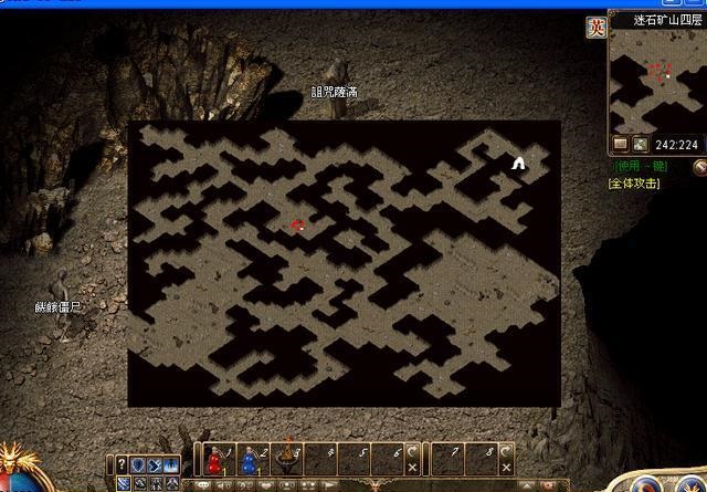 第一张地图:它的位置就在传奇私服1.76中的白日门,这个地方因为非常明显曾经被很多玩家发现过,就在白日门地图的左边,在地图上可以看到一个非常明显的洞口的标识。但是真的跑过去看,却会发现什么都没有,所以当时引起了很多玩家的疑惑,不清楚地图上的图标到底有什么用途。其实这里在原版中是一个矿区——白日门矿区,里面有僵尸怪和尸王BOSS,但是在上线之前盛大把这里封了。