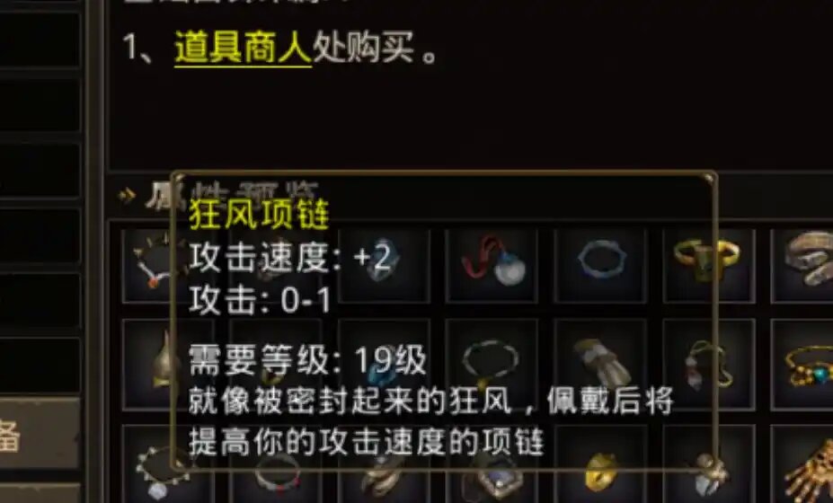 但还有一件装备同样是项链, 却在这场变革中逐渐崭露头角,主要原因就是它自身的一项特殊属性加成,它就是主属性攻击属性只有0-1的狂风项链,能够被战士职业玩家们看中,主要原因并非这微不足道的攻击属性加成,而是它的两点攻击速度加成。战士职业主要的攻击就是近战物理输出,攻速的加成能增加战士职业的攻击速度,只要行动足够快就能获取更多的机会和可能。