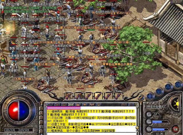 现在的安全区内,虽然也站满了玩家,但是满屏都是玩家穿的炫酷多彩的装备,根本都没有人在安全区摆摊了。早期的传奇中,只要进入安全区,几乎是无法行走的,因为人实在是太多了,被塞得满满的,几乎没有一点缝隙,想要移动就必须要靠交通疏散员。有很多玩家在这里摆摊,屏幕的公告上跳动着红色和黄色的字,基本都是玩家之间在进行交易。一般交易的都是道士0-3珍珠戒指、魔法0-2的黑檀手镯等物品,现在看起来或许觉得很一般,但在当时也是非常受欢迎的。