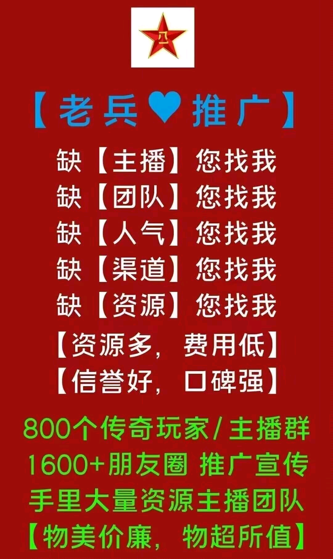 【老兵推广 】主播资源-商行资源-六年老推广