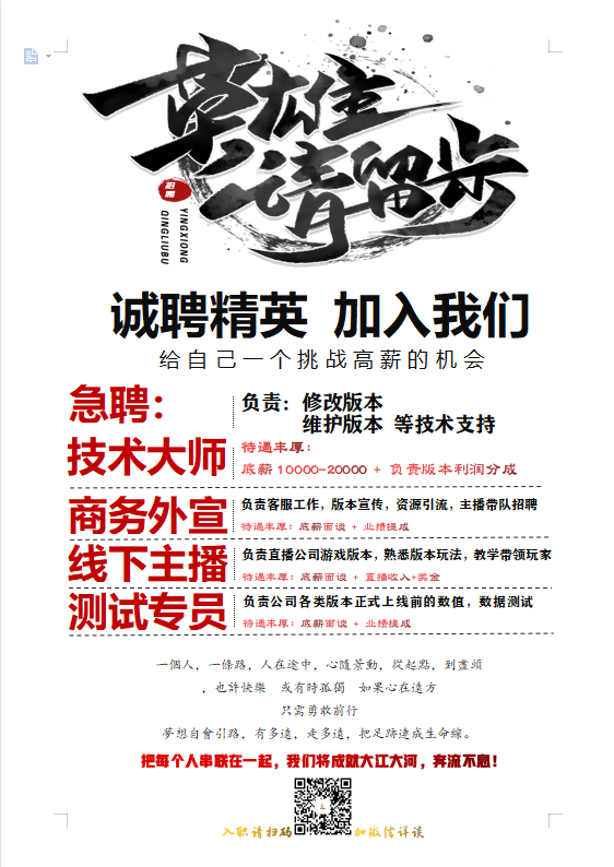 (公司稳定,工资按时发放,分成真实有效按版本单战区结算)