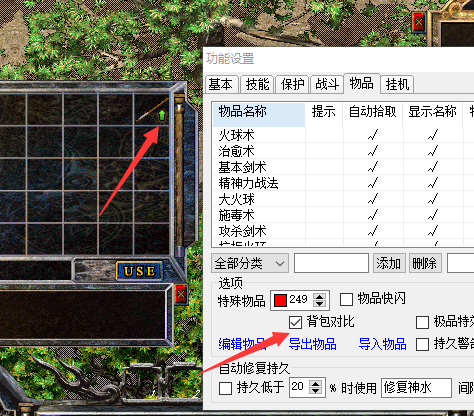 背包对比-当背包有更好装备时绿箭头提示