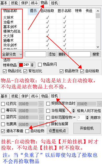 自动拾取设置--站上去捡取和挂机拾取