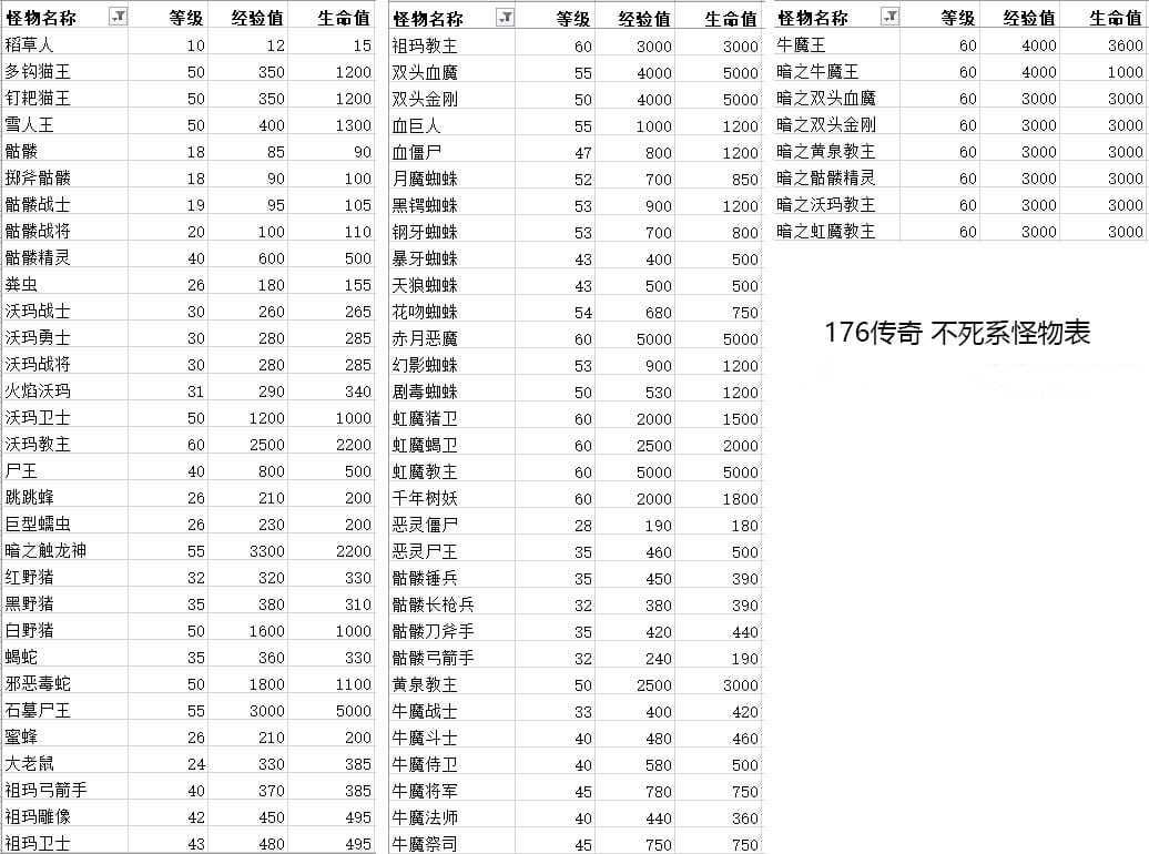 传奇中不死系怪物列表